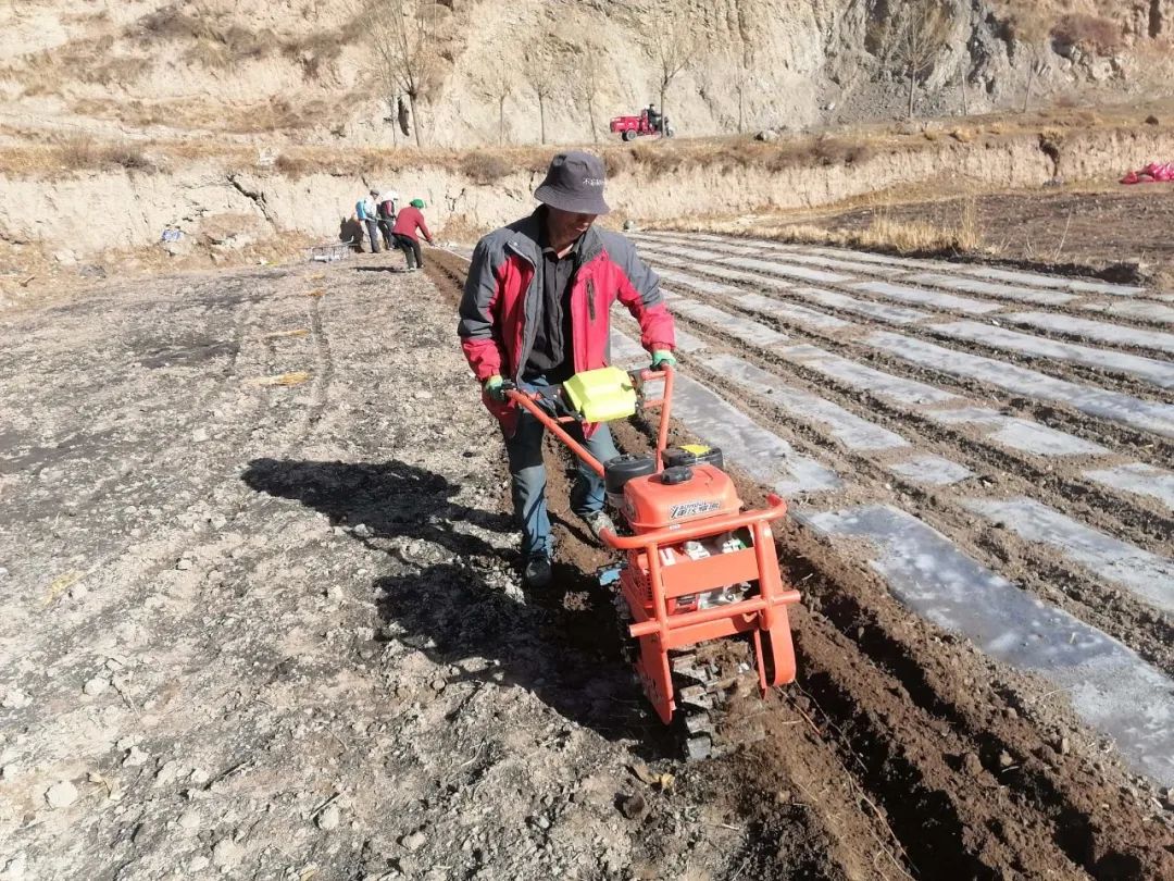 在王旗、石门、洮滨等乡镇,田间地头人头攒动,农机声隆隆作响,铁犁翻起肥沃的土壤,顷刻间,一亩亩土地被翻出新泥,村民们鼓足干劲,忙着整田、置苗、播种、施肥等各项农活,一幅幅“备耕春耕图”在临潭乡村的田野间徐徐拉开。