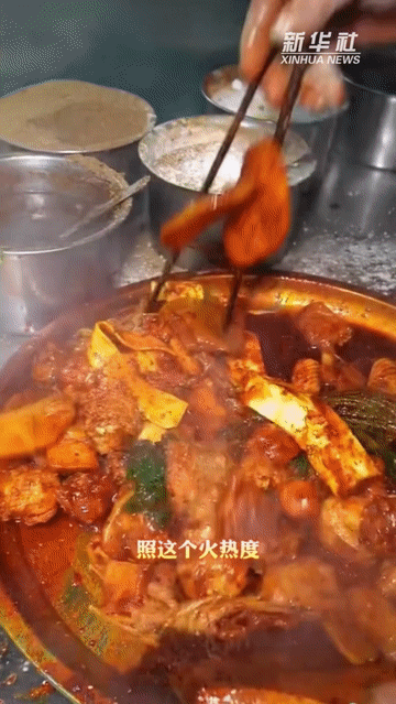 近看是蔬菜、远看是“捧花”,知道的是吃麻辣烫,不知道的还以为排着队给老板表白呢。外地游客打趣说,照这个火热度,麻辣烫老板的手用不了几天就全腌入味了。