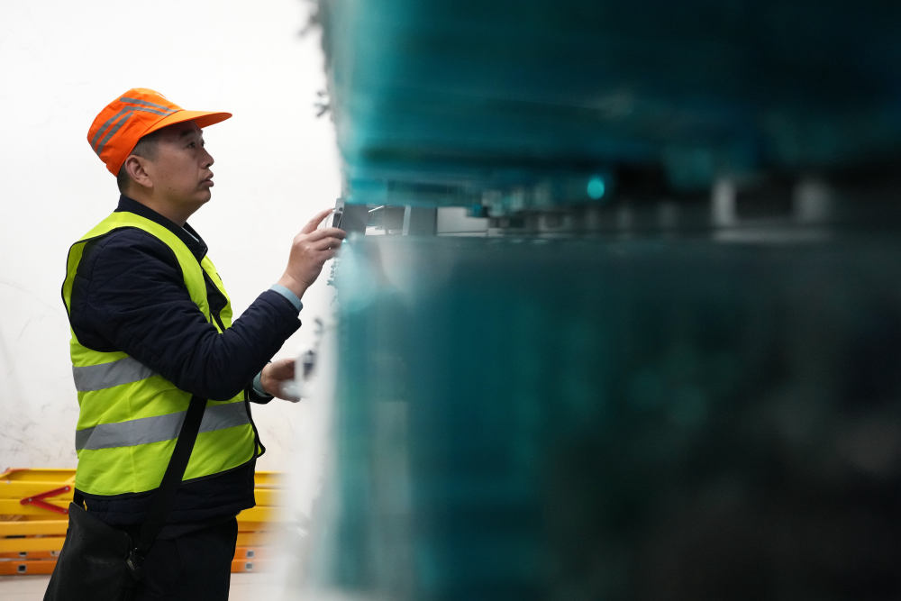3月20日晚,中铁八局电务公司工作人员在兰张三四线铁路中川机场站查看设备运行情况。新华社记者 陈斌 摄