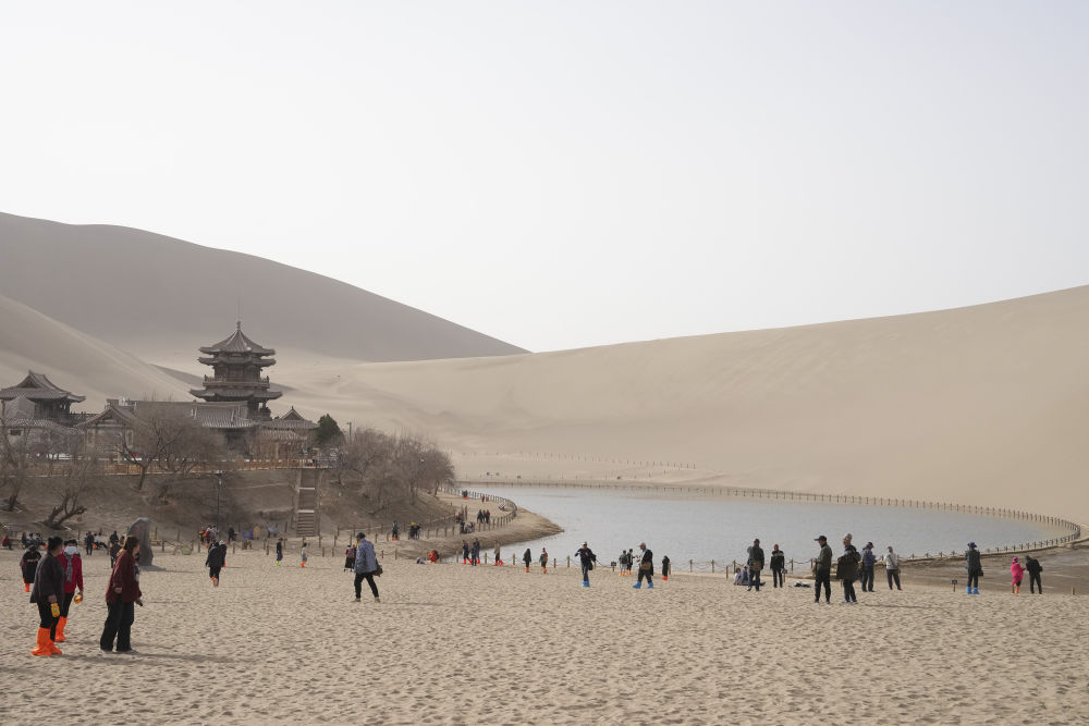 “甘肃春季旅游也这么火吗?”当广东游客李丽看到敦煌鸣沙山月牙泉景区内大批观山赏泉的游客时不禁发出这样的惊叹。因为夏季人头熙攘、酒店房间供不应求,她特地选择带着父母和3岁的孩子错峰出游,没想到即便是在春季,这里的游客也不少。