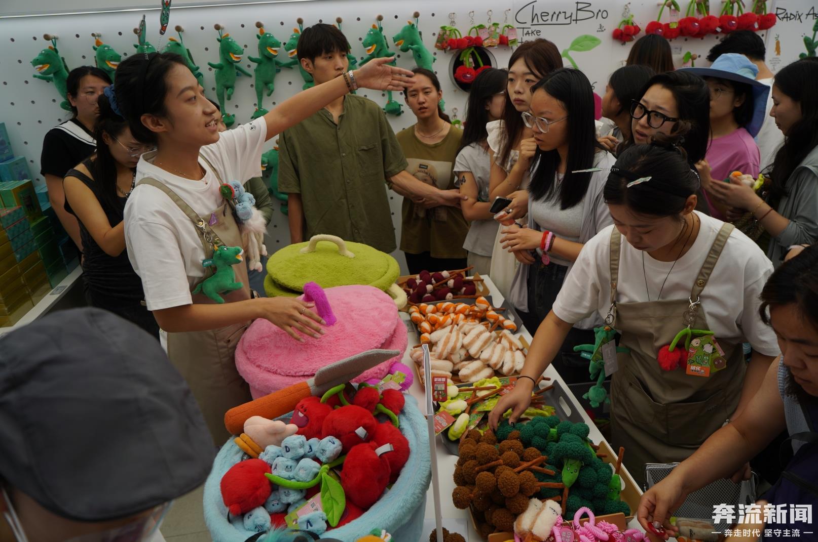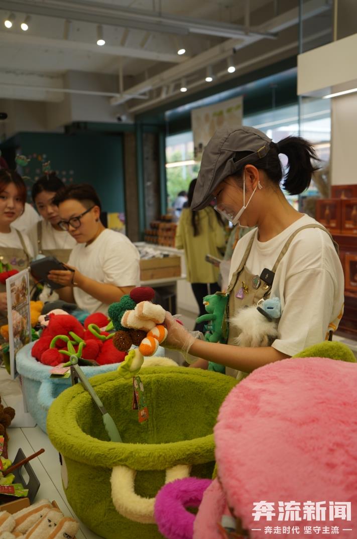 在甘肃省博物馆,购买“麻辣烫”系列的毛绒公仔不仅仅是“挑选——结账”的简单步骤,在挑选完毕后,还有工作人员与顾客沟通交流、询问口味、撒上“秘制酱料”,最后再耐心“烹饪”这一系列互动的过程。