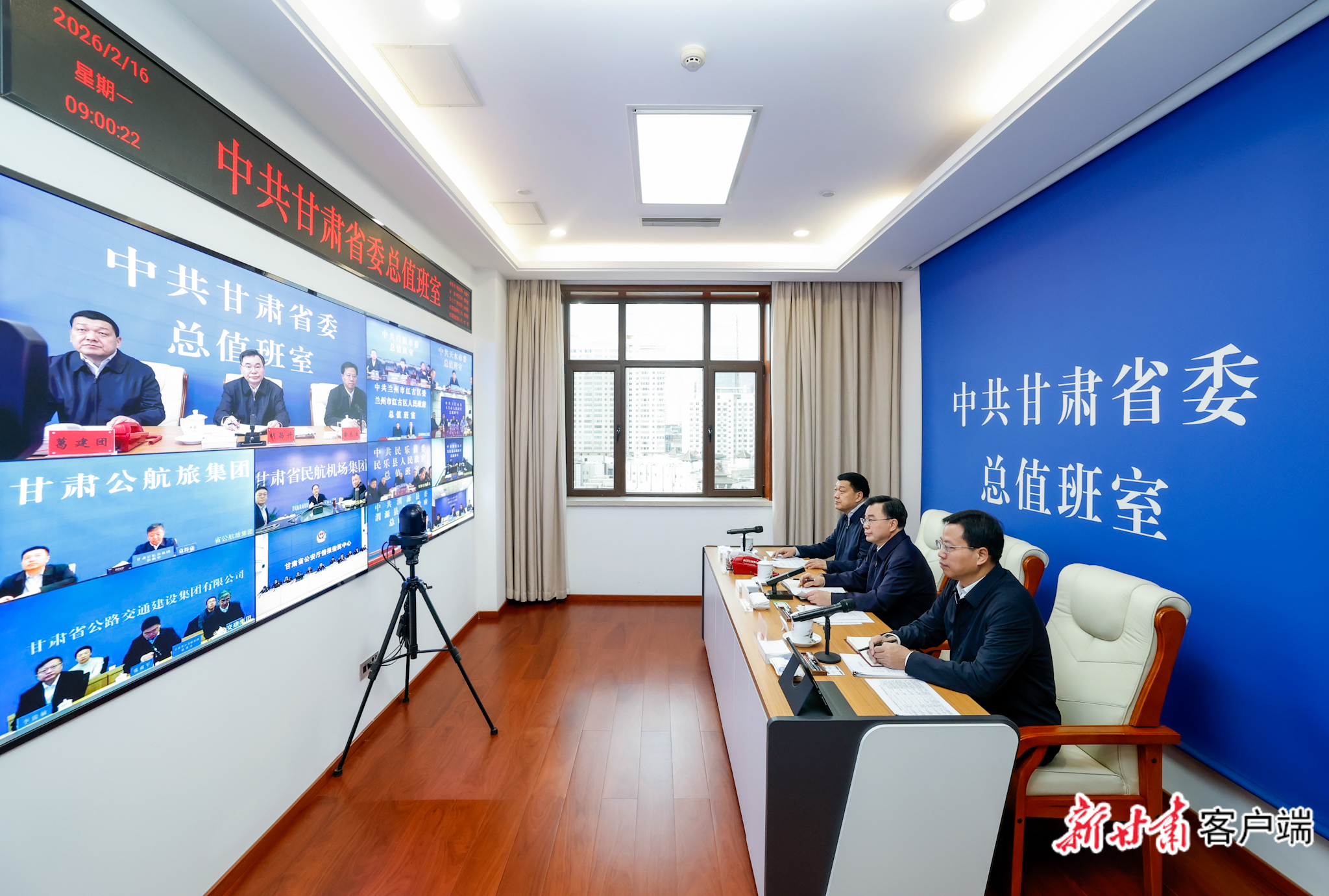 2月16日,省委书记、省人大常委会主任胡昌升来到省委总值班室,视频调度值班值守、安全生产、公共安全、市场保供稳价等工作。新甘肃·甘肃日报记者 孟捷