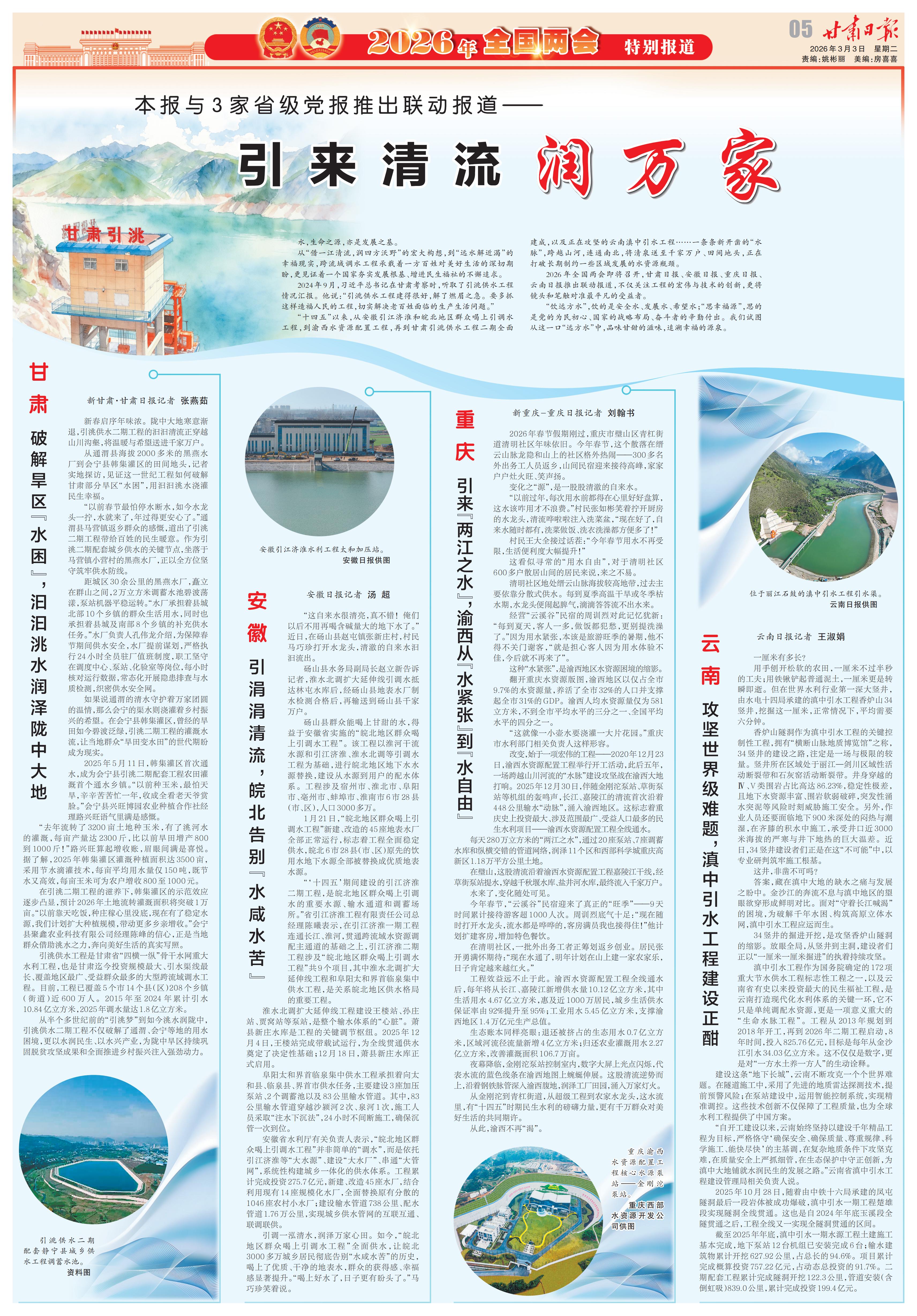 2026年全国两会即将召开,甘肃日报、安徽日报、重庆日报、云南日报推出联动报道,不仅关注工程的宏伟与技术的创新,更将镜头和笔触对准最平凡的受益者。