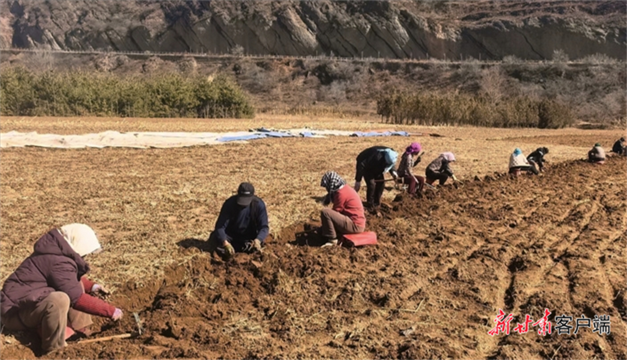 华亭市马峡镇连片育苗基地,药农们正忙着采挖药苗。