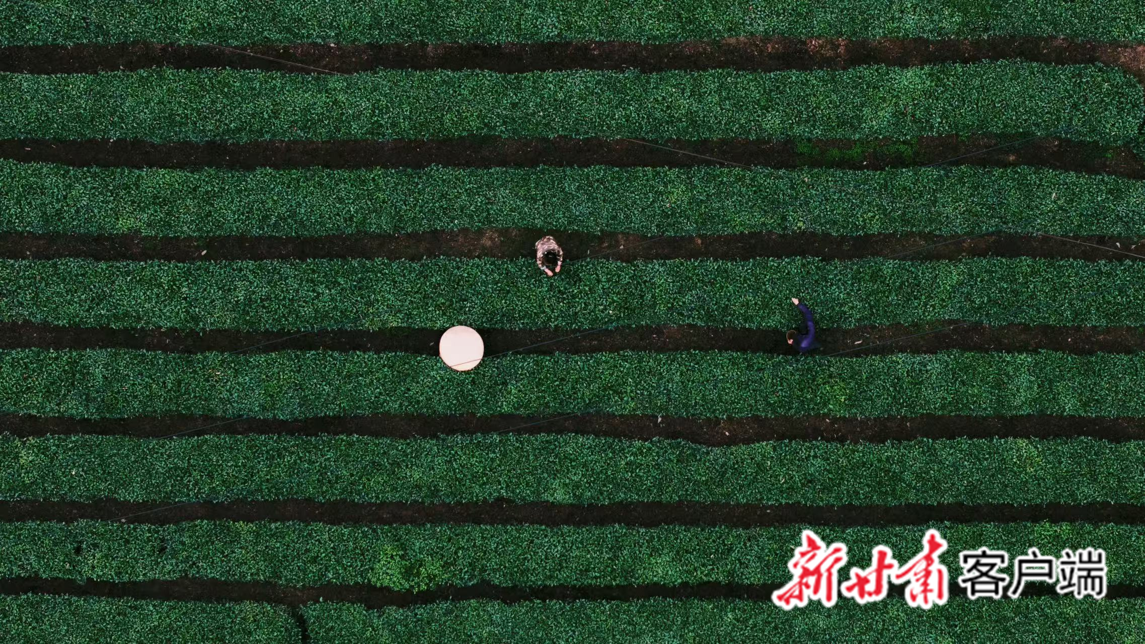 网络达人与茶农一起体验摘茶叶。