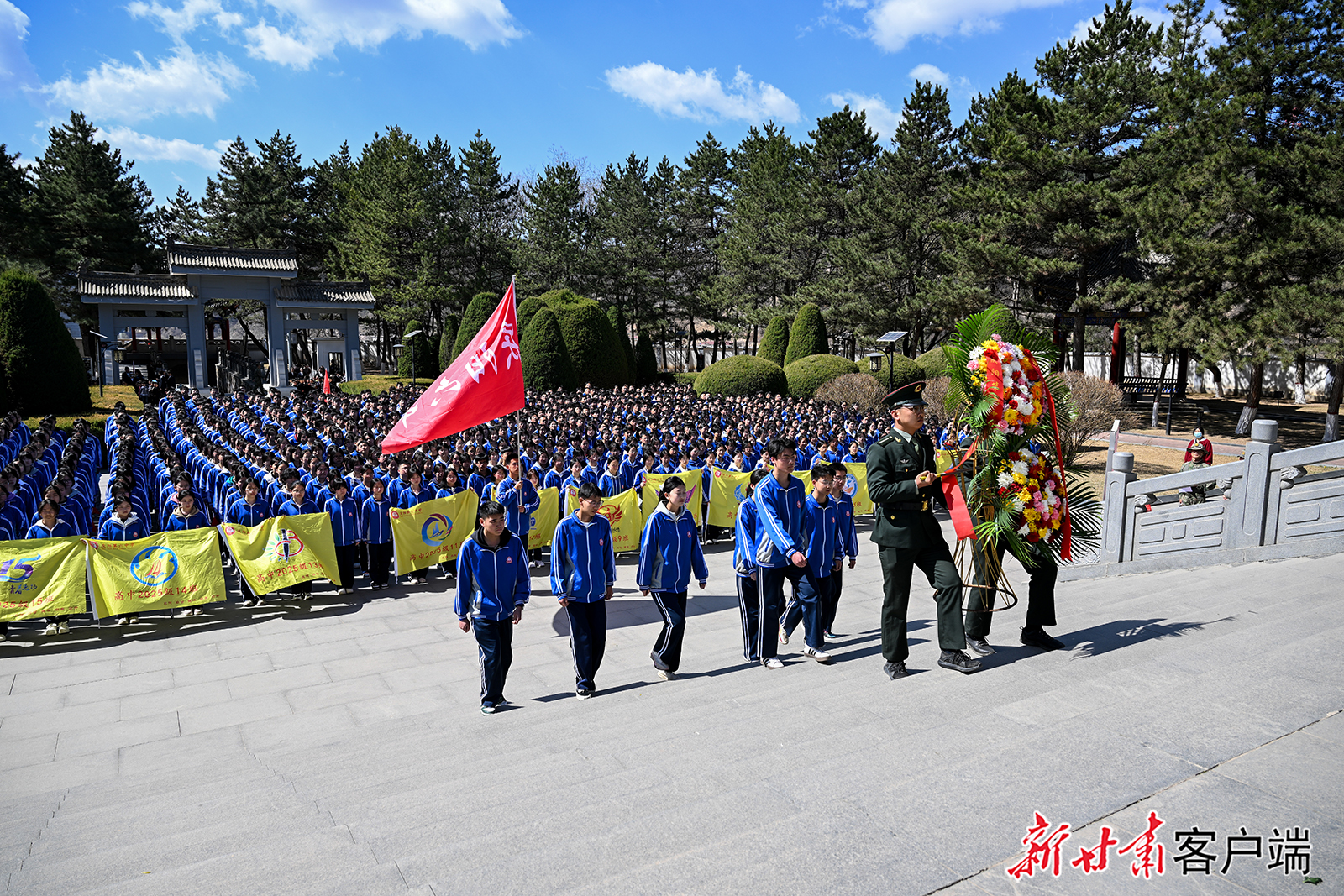 4月2日,张掖市众多干部职工和学生来到甘州区龙渠烈士陵园,向烈士纪念碑敬献花篮和鲜花,缅怀革命先烈,感悟革命精神。
