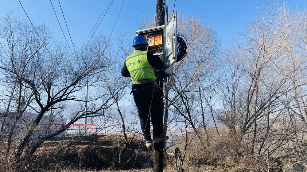 中国电信积石山分公司工作人员正在接线作业。新华社记者 李杰 摄