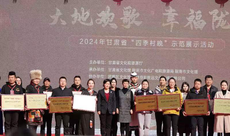 活动现场甘肃省文旅厅还为获得2023年全省“四季村晚”优秀示范展示点和优秀节目荣誉的30个单位颁发了奖牌和证书。