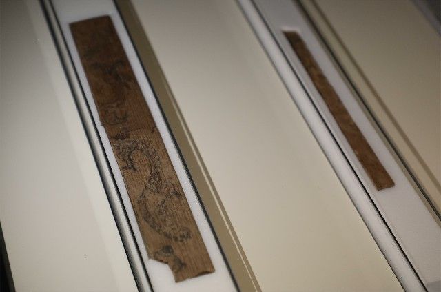 这是现藏于甘肃简牍博物馆的汉代悬泉龙凤画木牍。新华社记者 多蕾 摄