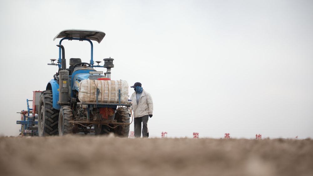 祁连山下,春光正浓,一辆辆装有北斗导航系统的大型复式播种机在王新宏面前轰鸣驶过。王新宏看着面前热闹非凡的场景,谈话间语气充满喜悦和憧憬。4月,甘肃省张掖市国家级玉米制种基地迎来了一年一度的春播盛况。