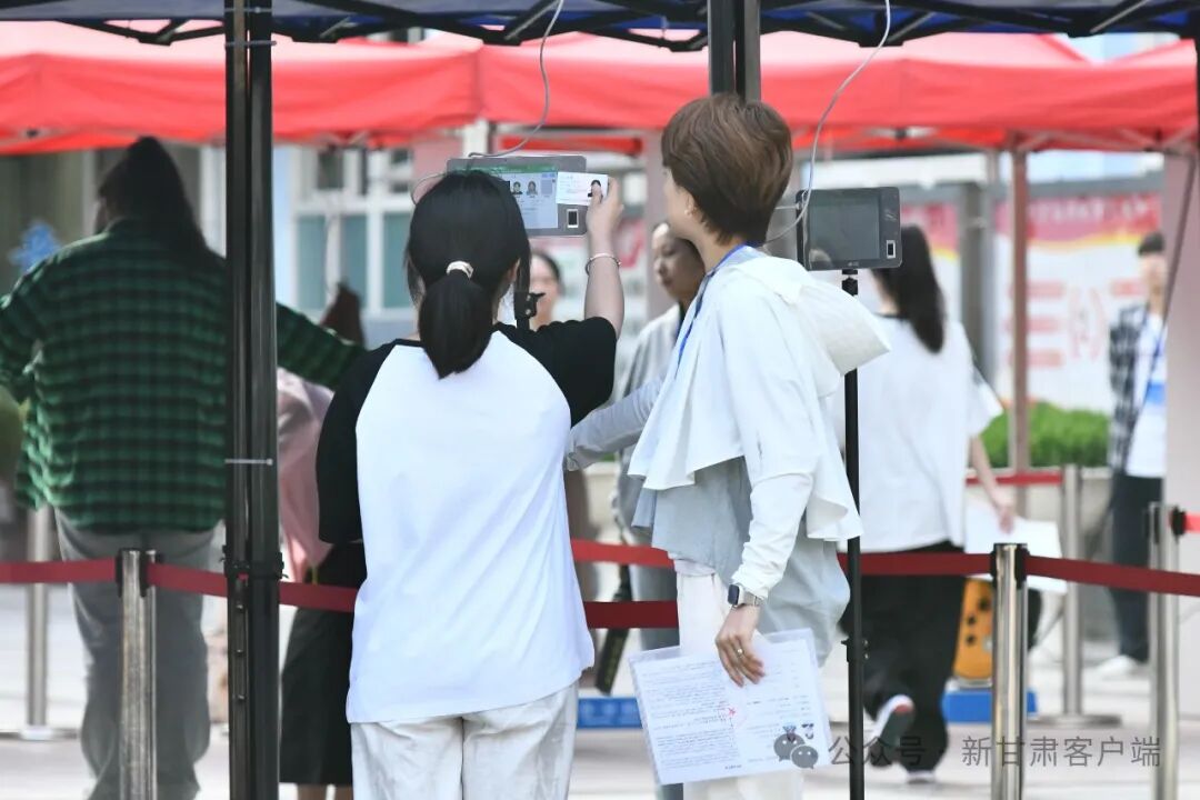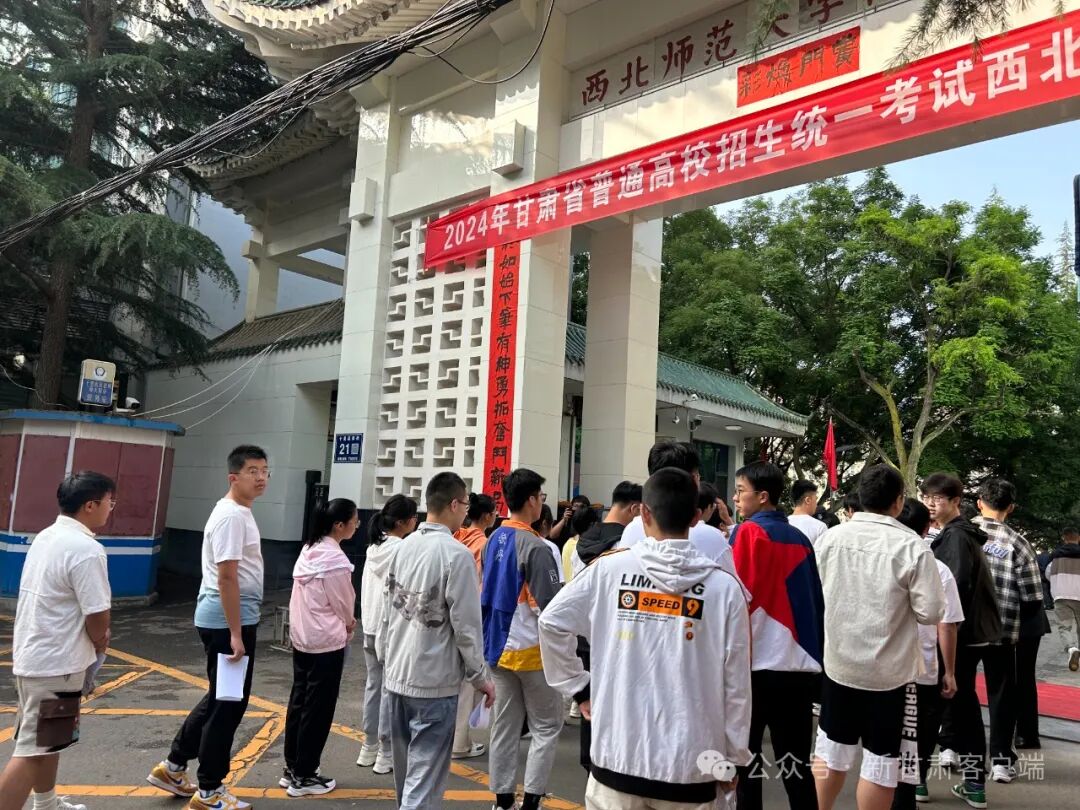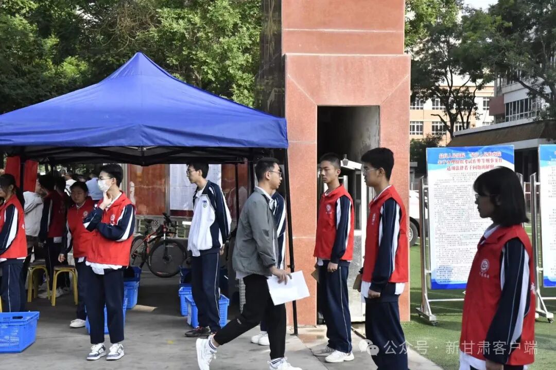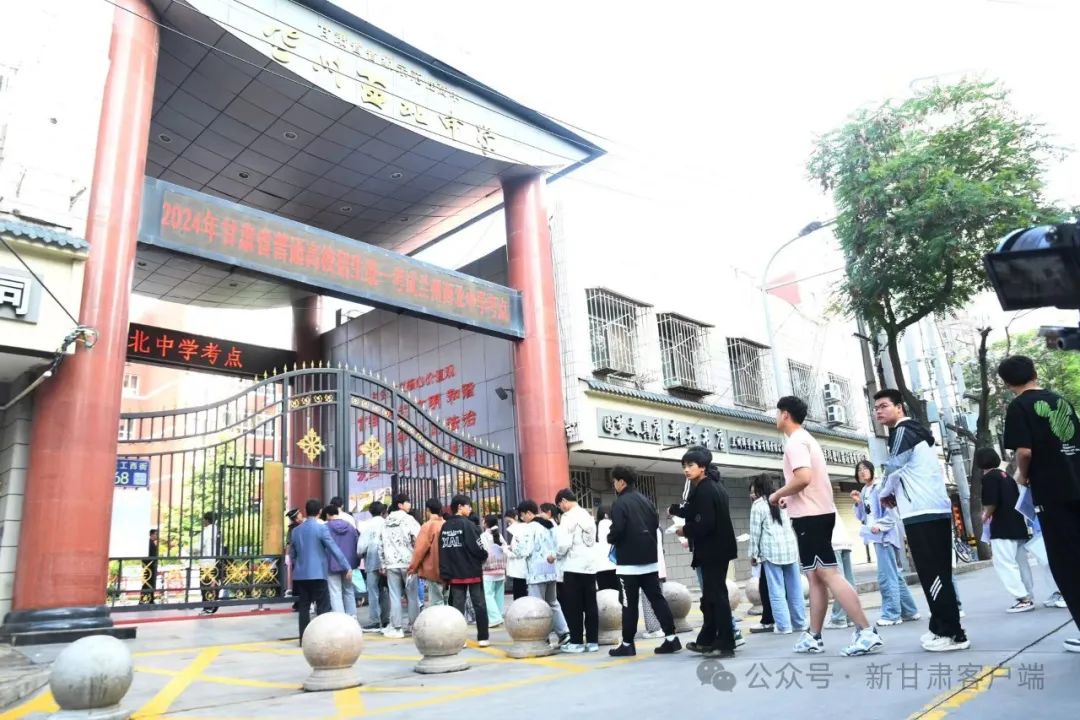 兰州五十八中(兰炼一中)考点外,考生们正有序步入考场。