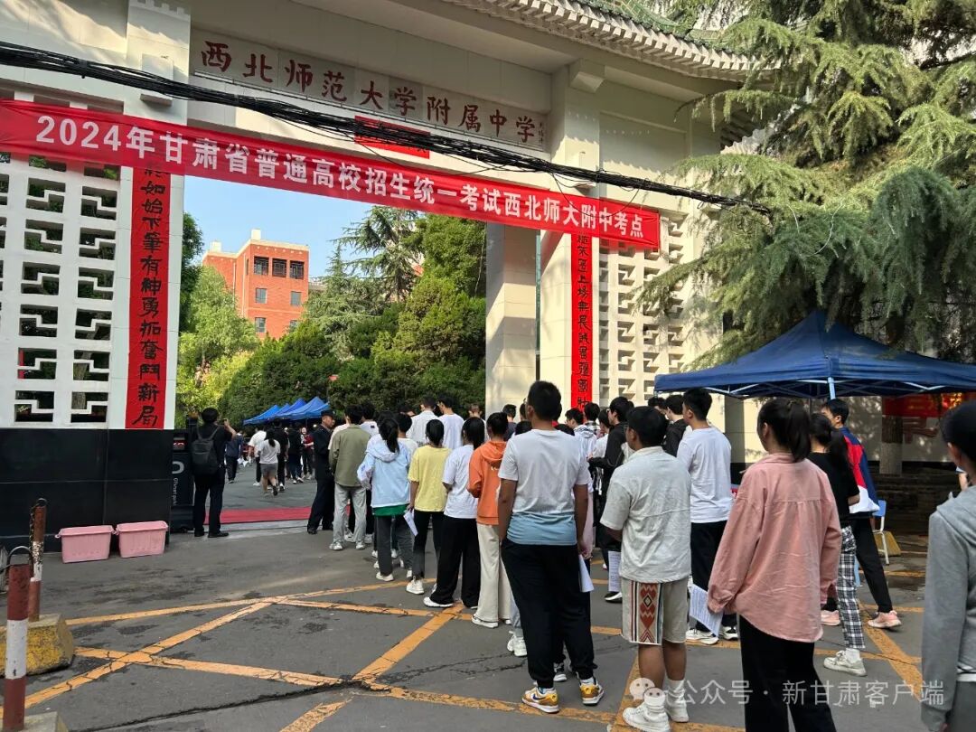 早上8时,西北师范大学附中考点外,考生们陆续进入考场。