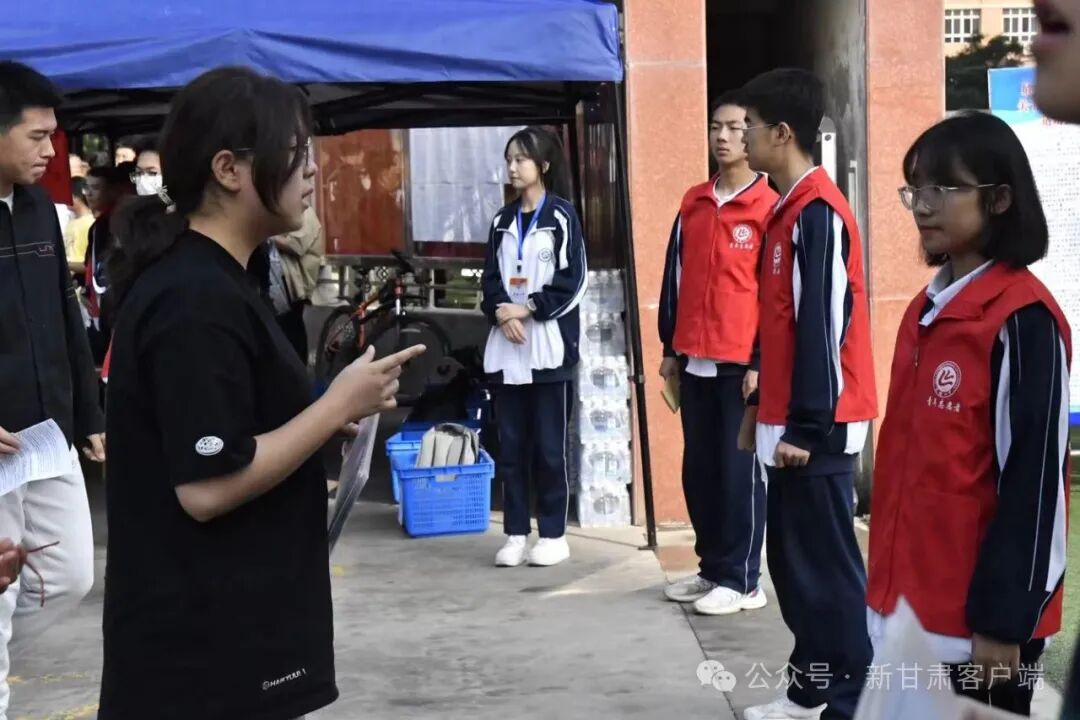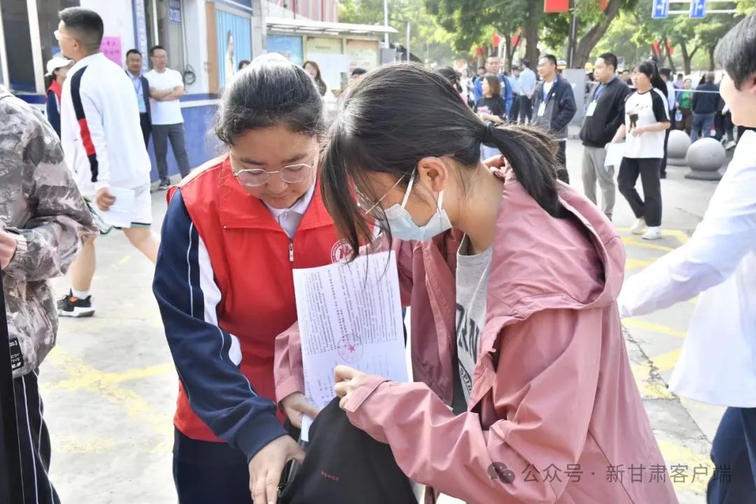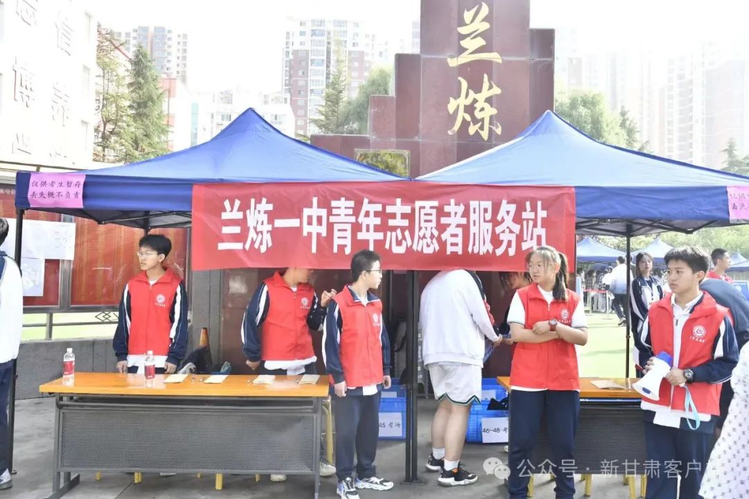 兰州五十八中(兰炼一中)考点外,兰炼一中青年志愿者服务站为考生提供考前服务。