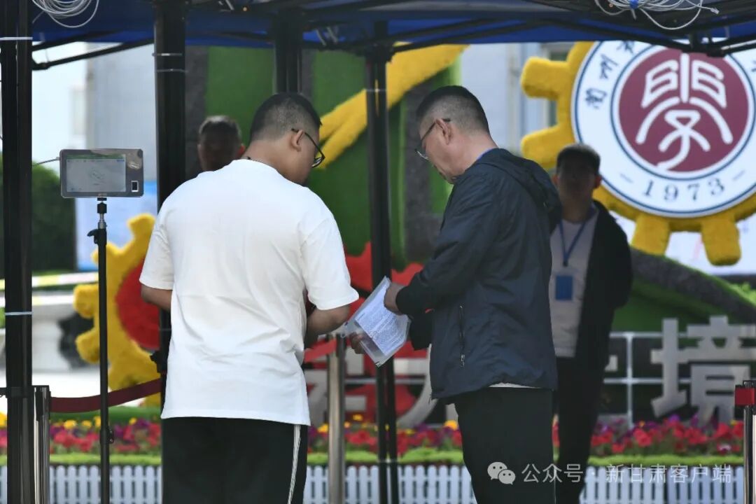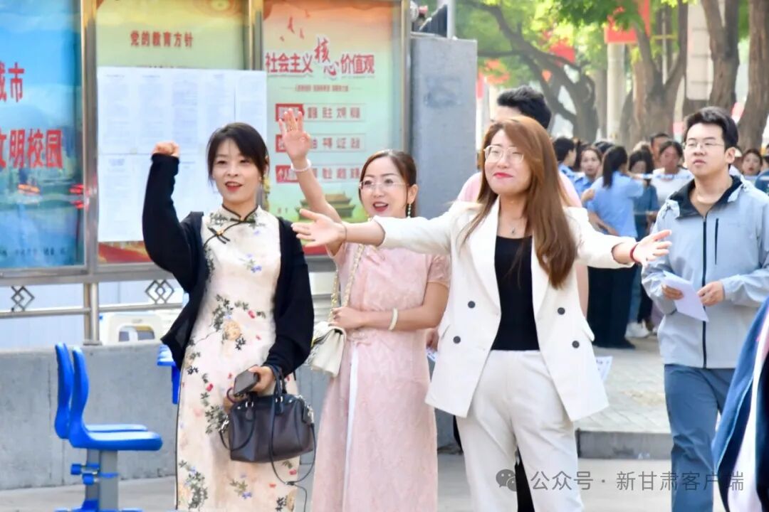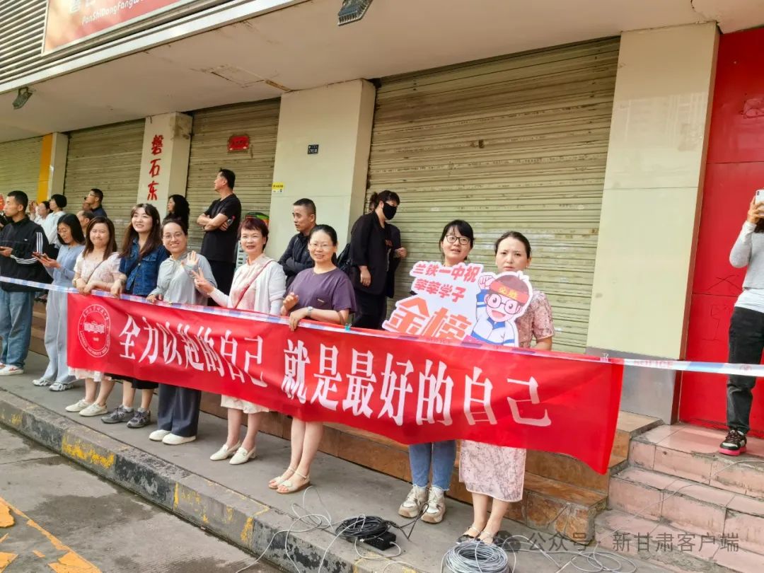 “沉着冷静。”“一切顺利!”兰州五十八中(兰炼一中)考点外,老师们为考生加油。