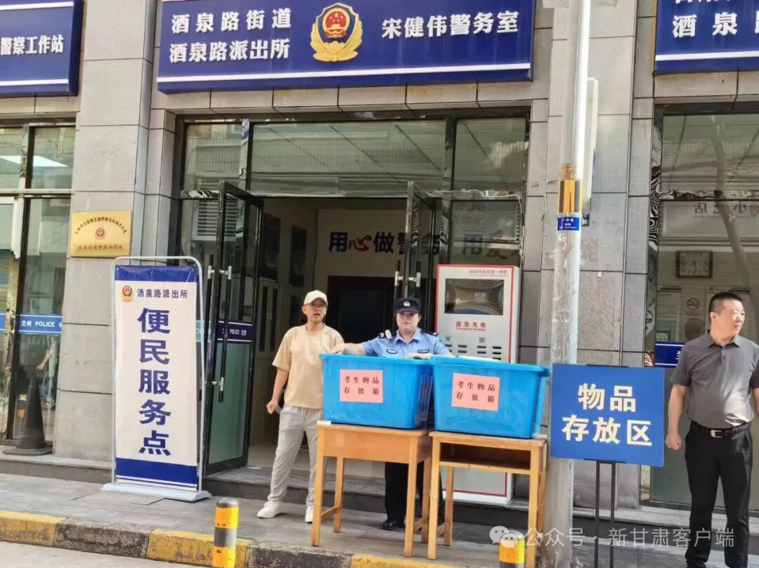 兰州一中考点,酒泉路派出所为考生设置了物品存放点。
