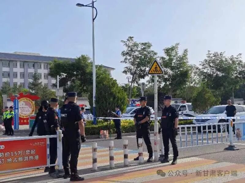 你们安心考试,我们全力守护。张掖中学考点外,交警、安保人员全身心投入,维护现场秩序。