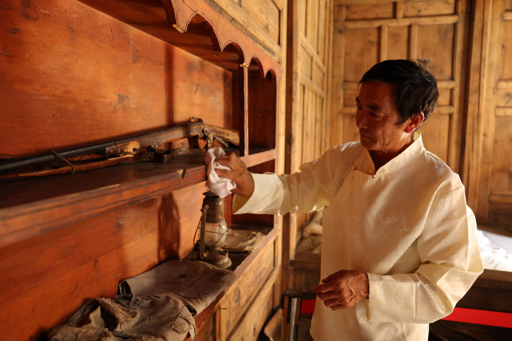 在甘肃省甘南藏族自治州迭部县的一个不起眼的小山村里,今年60岁的藏族汉子桑洁细心照顾着这里一处有着百年历史的藏式小木楼,这处小木楼既是他的祖宅,也是长征岁月里毛泽东曾经住过的旧居。