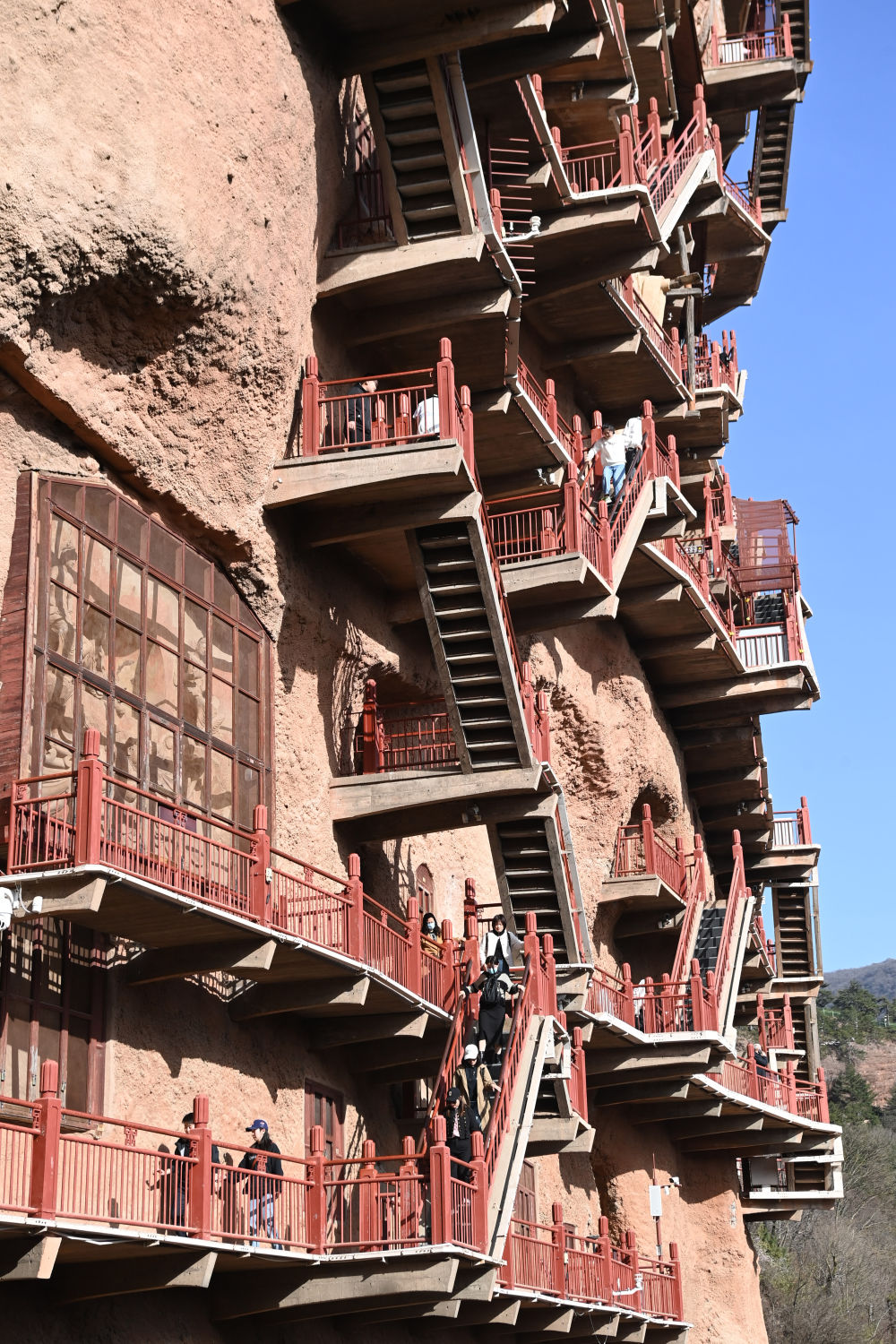 游客在甘肃天水市麦积山石窟游览 范培珅 摄