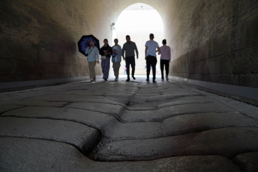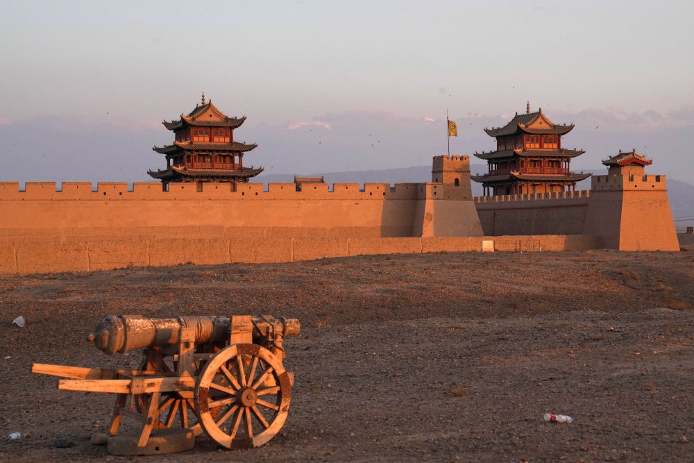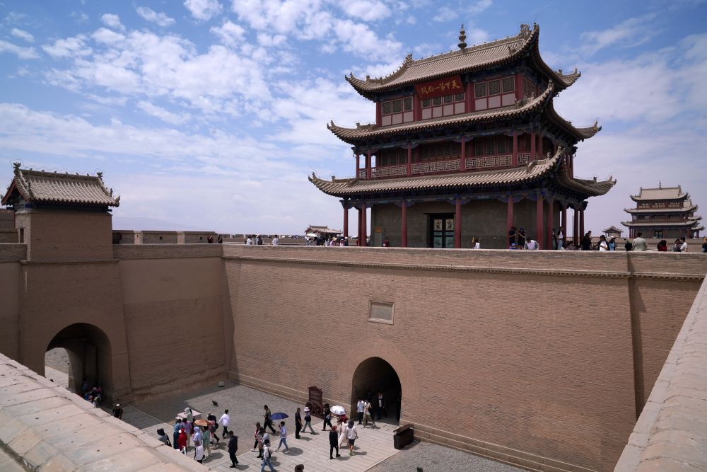 历经百年营建,嘉峪关形成了居中的关城与南北两翼长城相互守望的严密军事防御体系。关城由内城、外城、瓮城、城壕等组成,是一座城内有城、层层设防的坚固堡垒。走出关城最西侧的嘉峪关门,便是茫茫大漠戈壁。晚清名臣林则徐路过嘉峪关时曾赋诗赞叹:“严关百尺界天西,万里征人驻马蹄。”“除是卢龙山海险,东南谁比此关雄。”