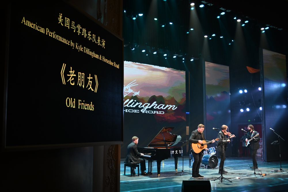 “与子同唱,与子同饮,我将离去,但我们仍将重逢。”在兰州文理学院,迪灵汉姆弹拨着中阮,与乐队成员为师生献唱原创曲目《老朋友》。迪灵汉姆介绍,歌词灵感来源于甘肃之行带给他的感悟,此首歌专为甘肃省与美国俄克拉何马州的友谊、中美人民的友谊而作。