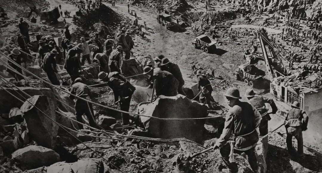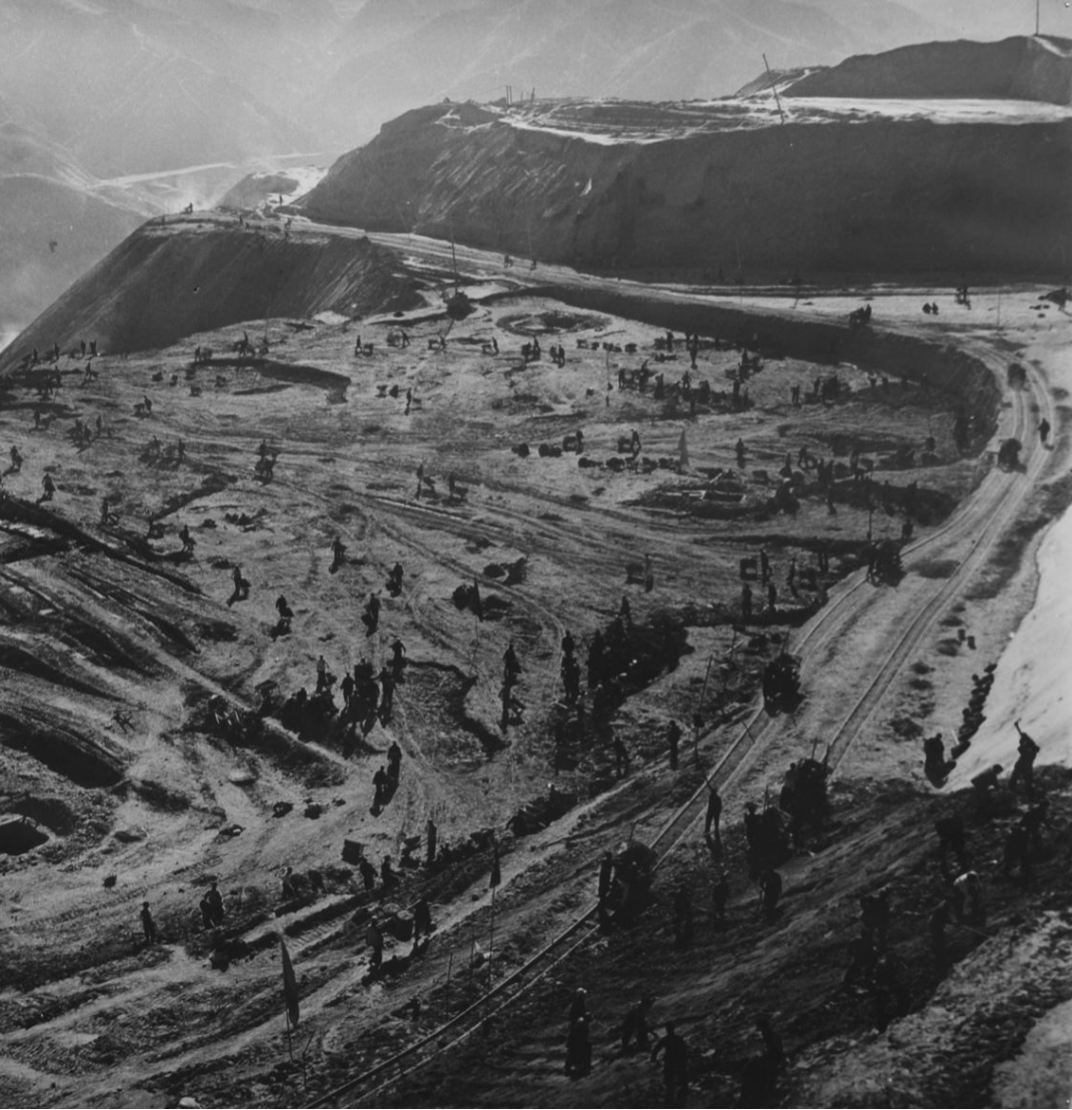 在一张张历史照片中,建设时期的场景被完整再现。没有工具,老一辈建设者们自己制造;缺少运输材料的汽车,他们靠人拉肩扛;不掌握技术,他们边干边学。