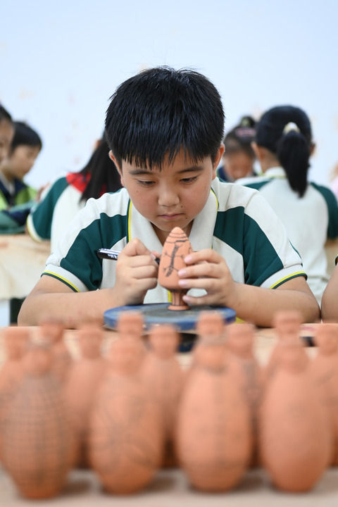 如今的临洮县,非遗传承蔚然成风。在当地的马家窑文化产业园彩陶小镇,一批批陶艺社团的学生专注于制作彩陶作品。据了解,当地有12所中小学配备陶艺室,部分学校研发了陶艺校本教材,当地还会定期举办中小学生陶艺大赛。