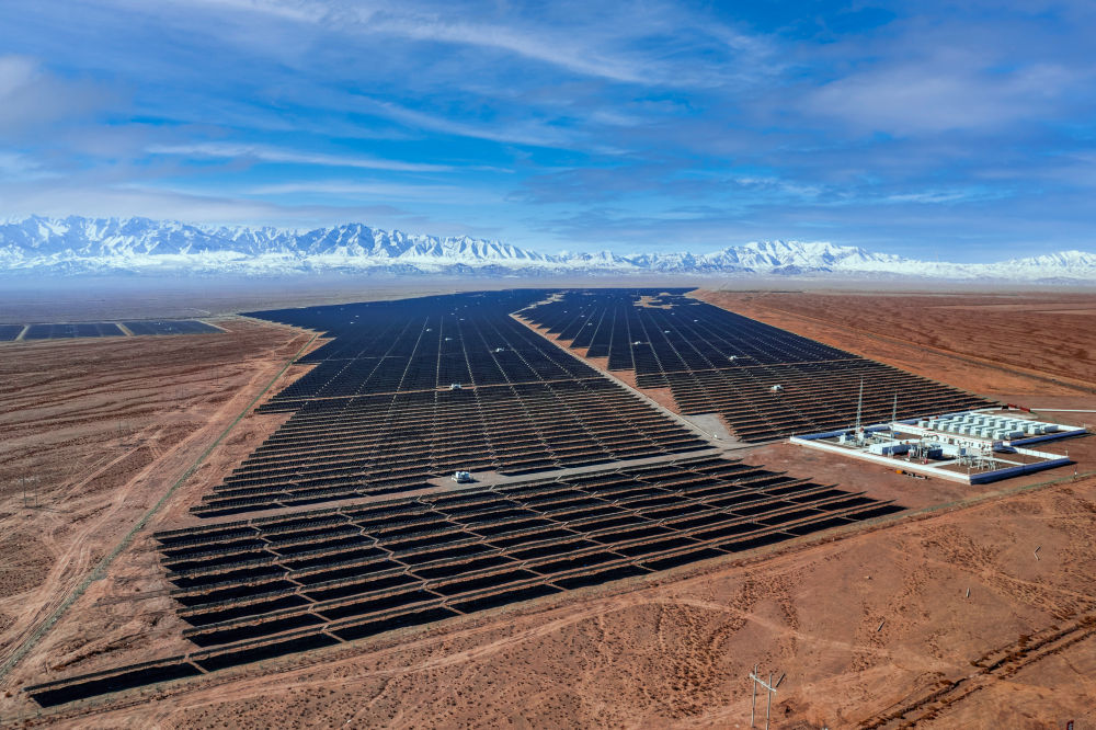 从空中俯瞰,漫山遍野的抽油机旁,不时点缀着光伏板;炼塔林立的装置区,已难觅烟尘踪迹;祁连山脚下的光伏板间,一枚“宝石花”熠熠生辉……