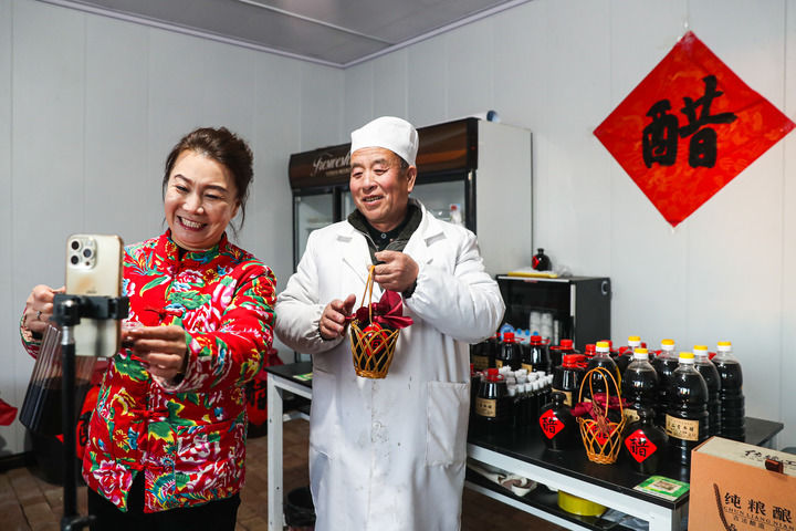 从年少时学做醋,到64岁即将隐退,老王的醋才叫响了名声。杨清艳教会了王克弟开直播,他还让孩子买来了智能手机。直播卖醋时,他时常讲一些醋的历史,还常常引用《本草纲目》对药醋的记载,教网友们掌握醋的妙用。他也很善于听从需求,针对现代人的生活特点,研究酿制安神、美容、治疗头疼等不同功效的醋。