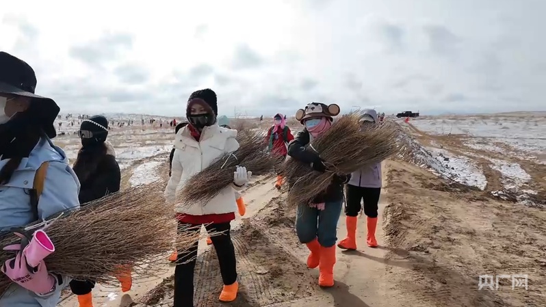 来自五湖四海的志愿者奔赴民勤治沙(央广网记者 寇刚 摄)